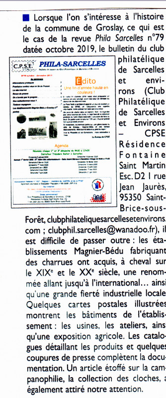 La revue "Timbres magazine" de Février 2020 (N°219) publiait cet article sur notre journal N°79 de Janvier/Février 2020 :