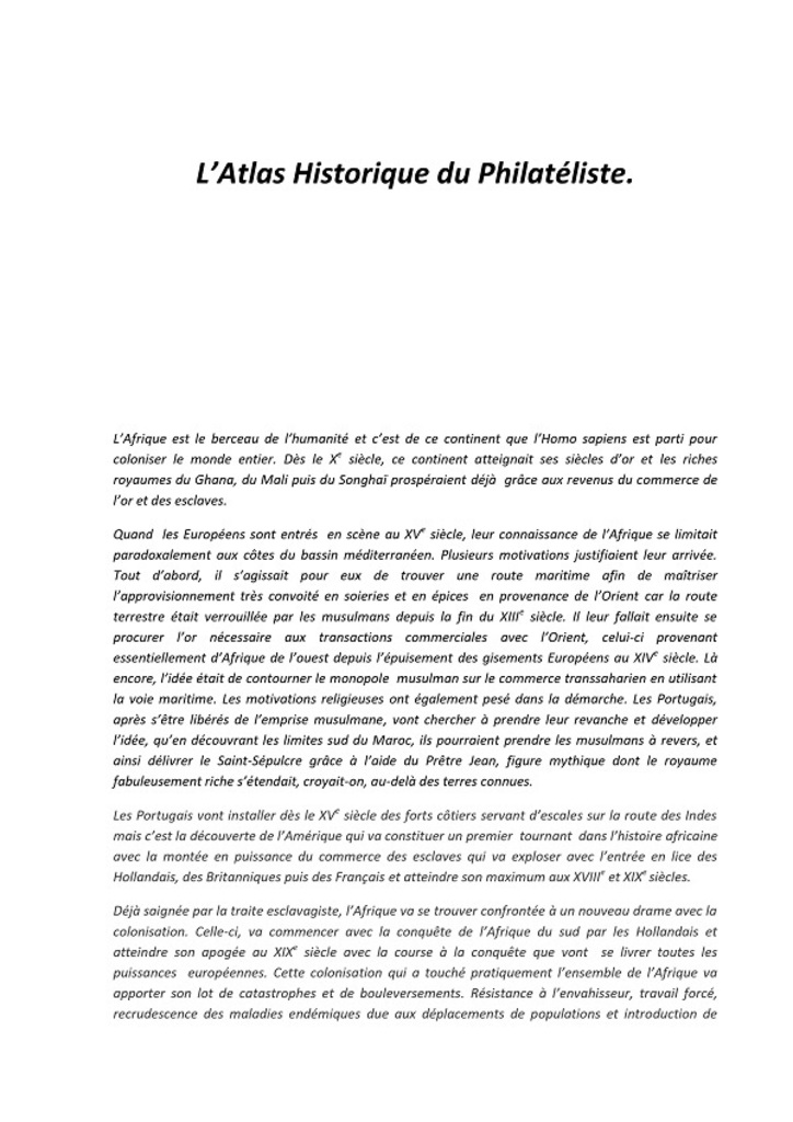 Voici quelques pages du 3ème volume de notre collection "l'Atlas Historique du Philatéliste"; il vous présente l'Afrique en 141 pages. Cette 3ème parution est vendue 20€ comme les précédentes (plus les frais de port) et vous trouverez le bon de commande dans notre rubrique "Nos publications".