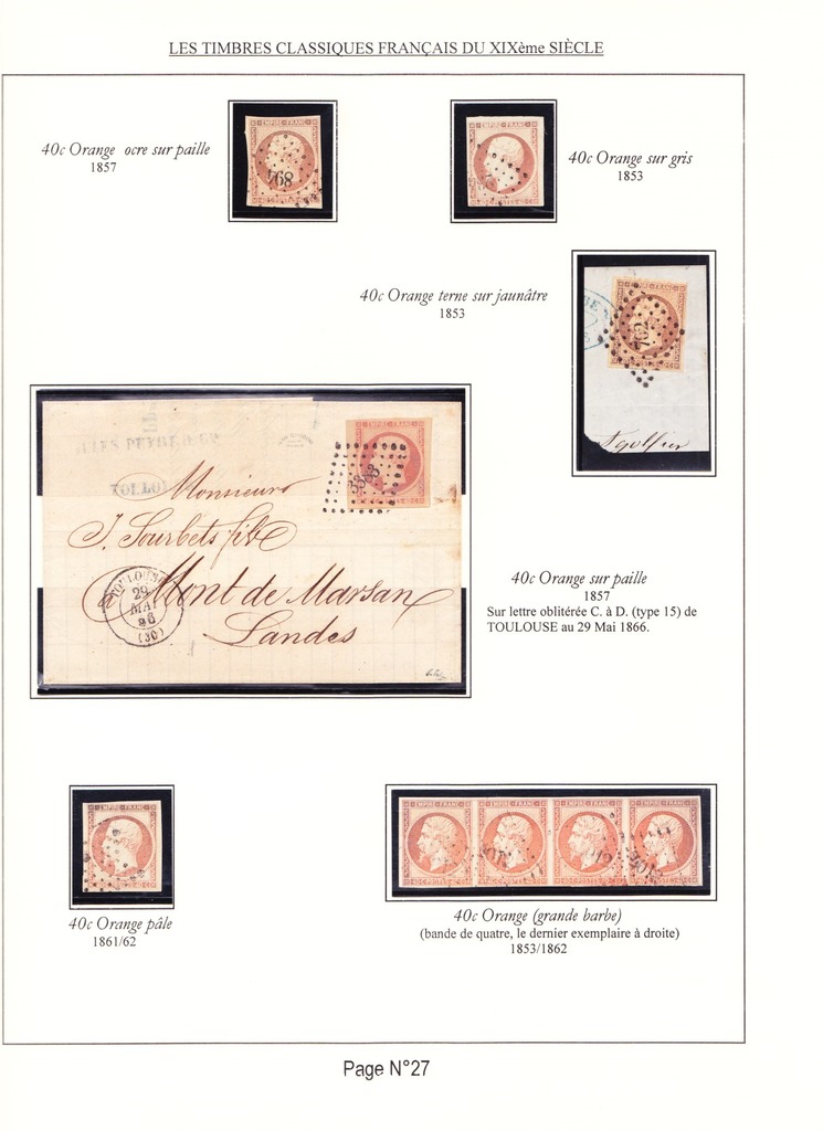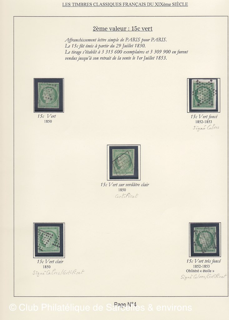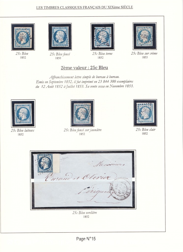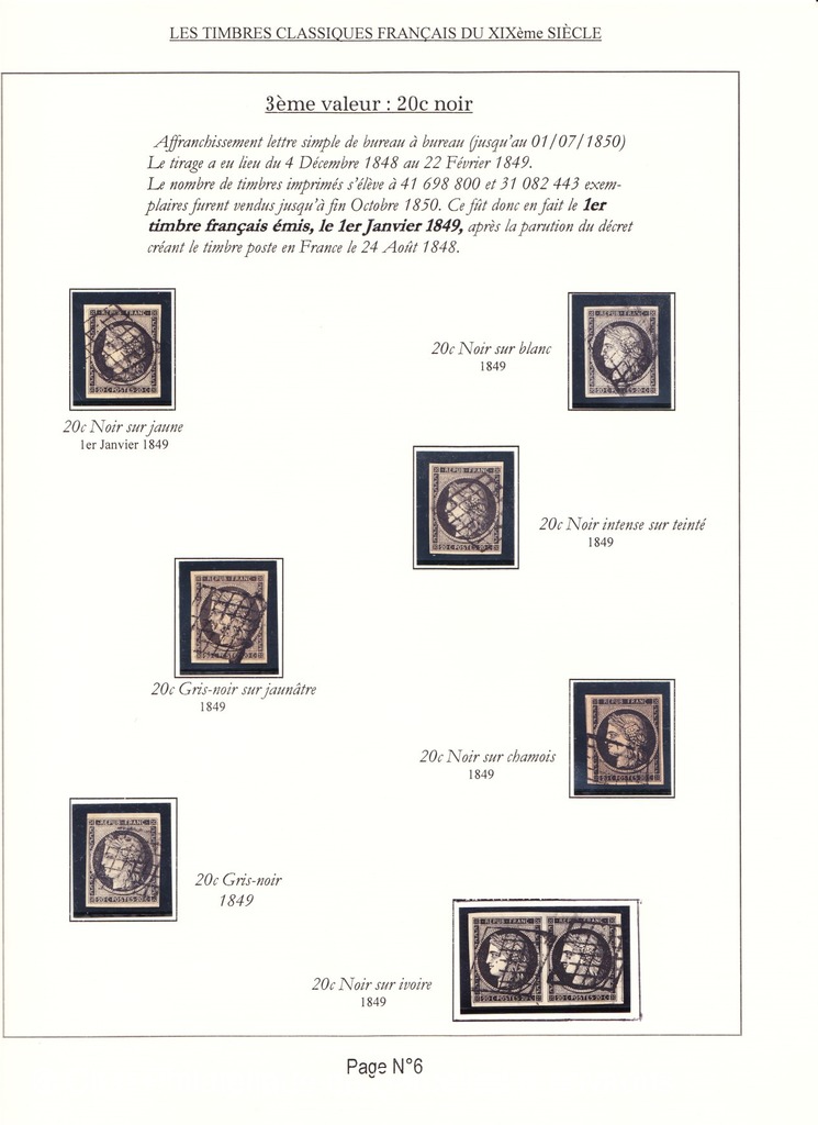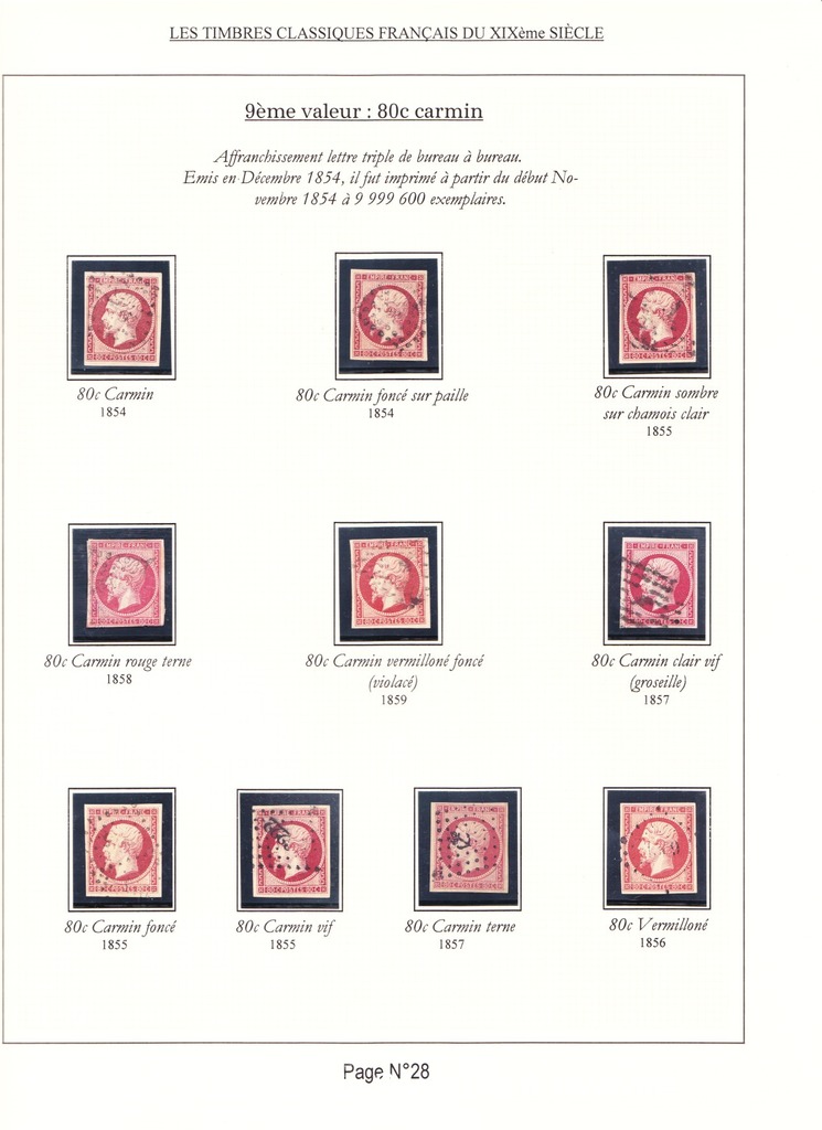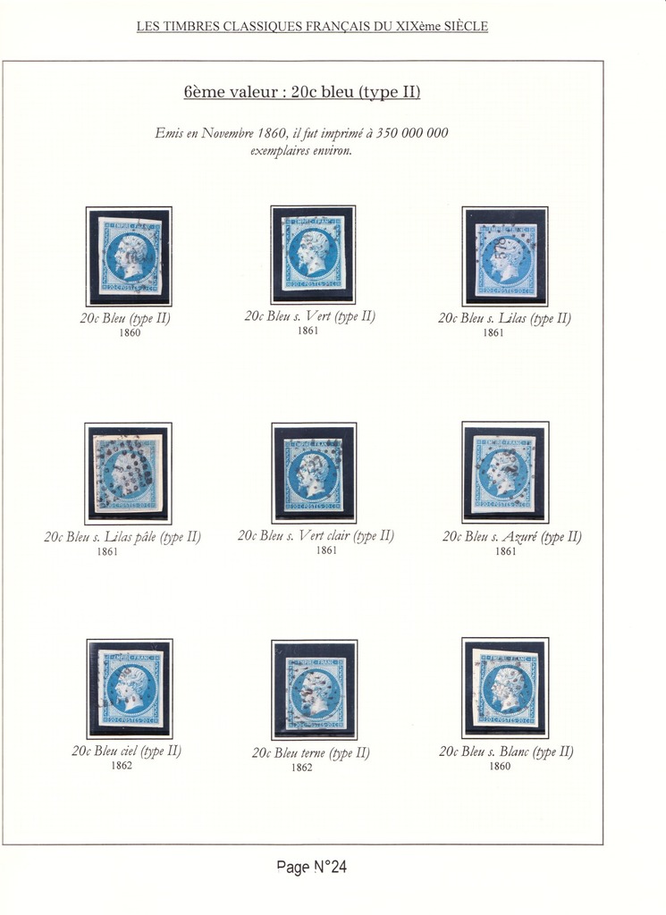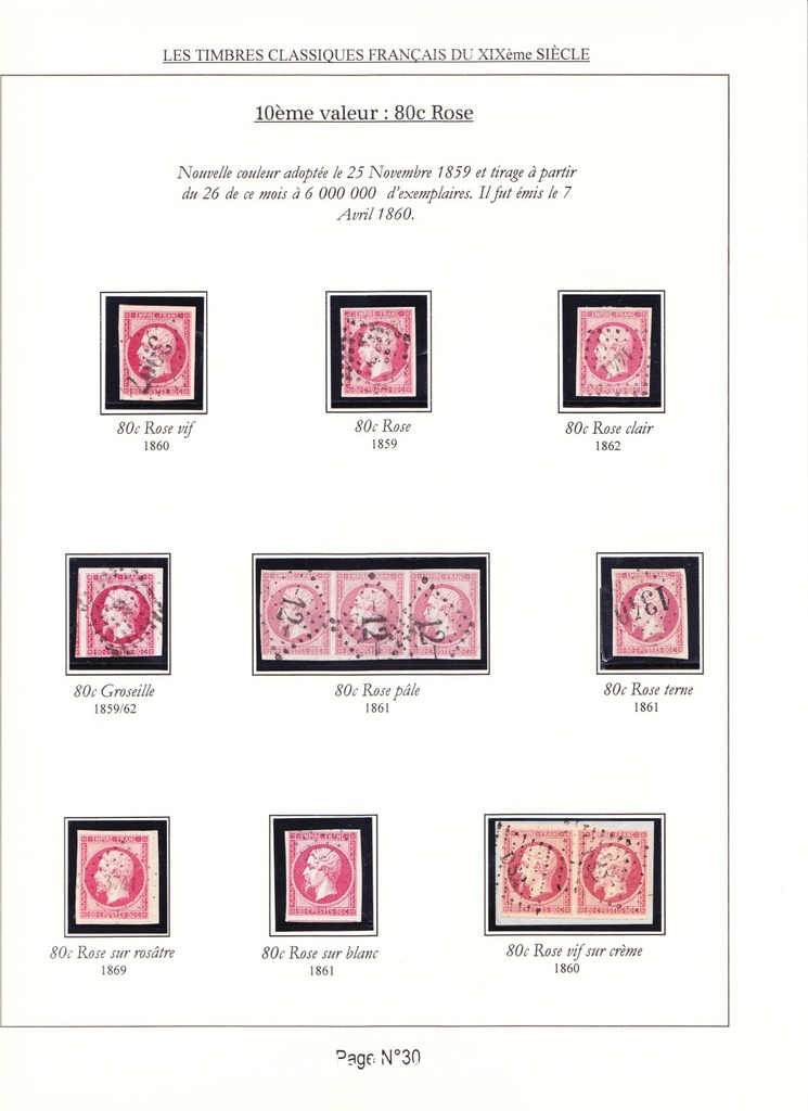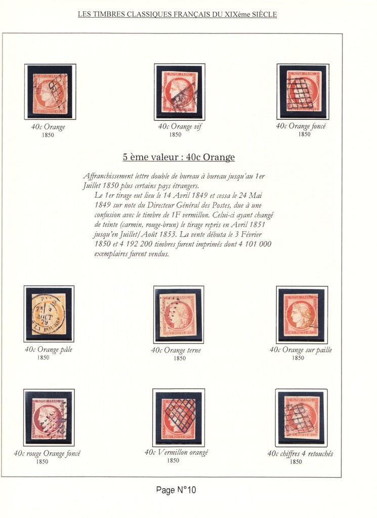 Cette collection présente les timbres classiques de FRANCE émis de 1849 à 1862 selon leur couleur (et nuances) ainsi que leurs variétés.